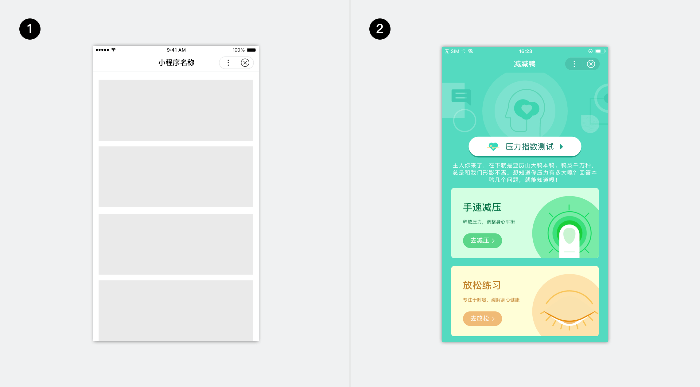 “减减鸭”是一款为用户分析压力情况,并帮助用户调节心情、减轻压力的工具类小程序。它运用小程序组件和小程序设计原则,创造了轻松愉悦且易于理解的体验风格。本文将从信息架构、阅读体验、色彩系统、LOGO 设计、动效设计 5 个层面介绍这款智能小程序的设计过程。
