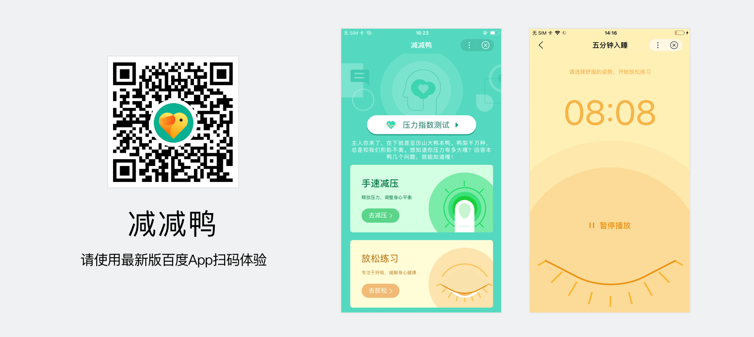 以上是智能小程序“减减鸭”的设计思考,更多细节设计可使用百度 APP 扫描下图二维码进行体验。