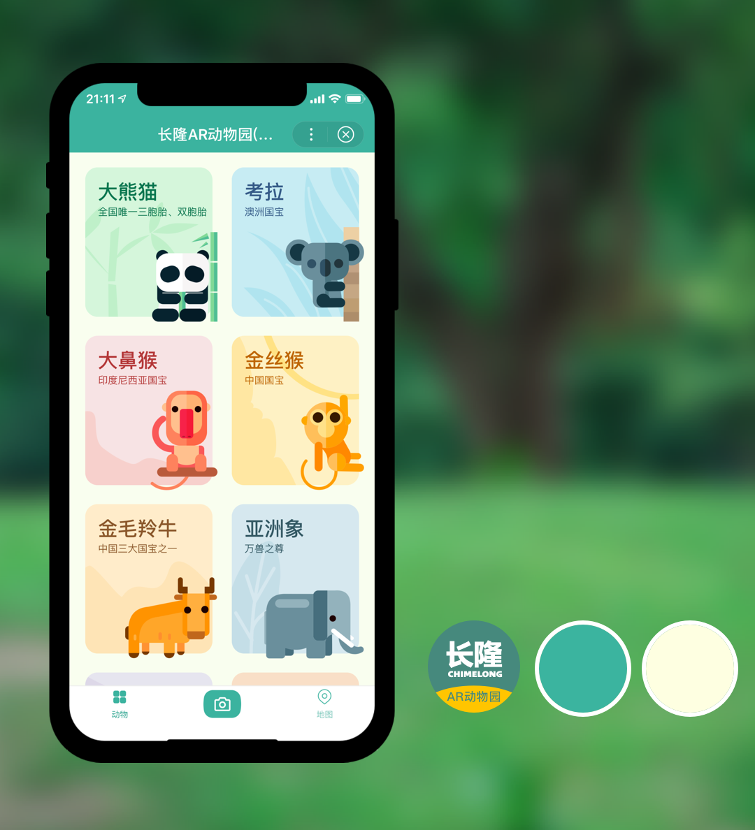 用呼应品牌清新的绿色作为长隆动物园主色,绿色的邻近色浅黄色辅助内容呈现。
