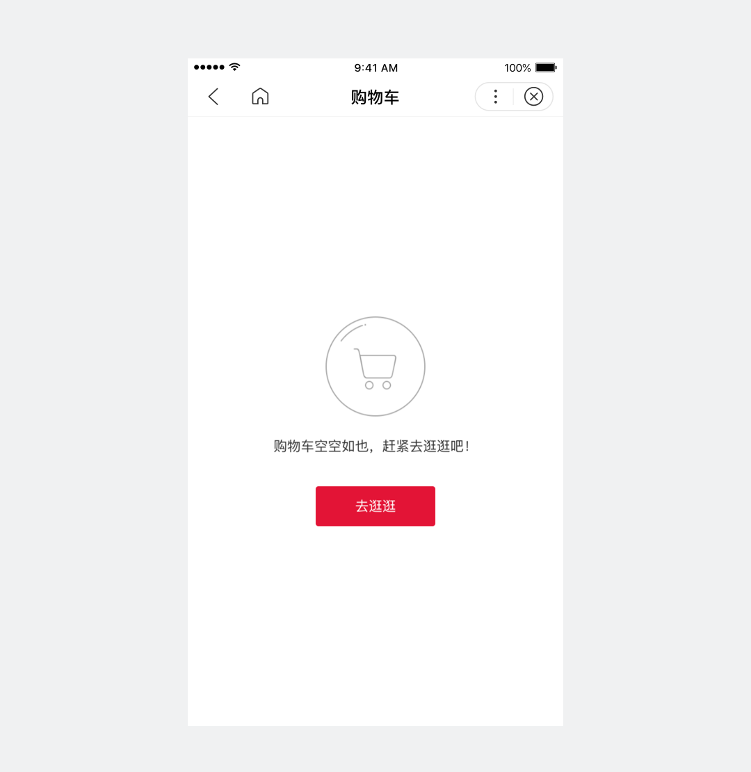 使用插画提示用户当前页面缺省,并提供“去逛逛”按钮,引导用户下一步操作。