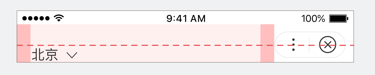 左侧自定义区域可呈现选择城市、搜索框等功能。注意左侧自定义区域内容应与右侧的胶囊水平对齐。技术实现请参考开发文档详见 全局配置 。