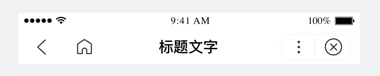 解释: 顶部自定义的导航栏,其中不包含界面,仅仅是限制了开发者写顶部 bar 内容的区域,使之在安全区内完成顶部内容的渲染;支持配置返回首页、上一页按钮,和滑动切换效果主题。