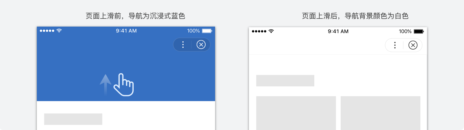 顶部导航栏支持上滑变色浏览体验更为沉浸,请注意切换后导航背景颜色配置应注意与页面内容背景颜色一致。