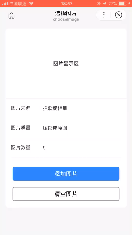 <button type="primary" bindtap="selectImage">添加图片</button>