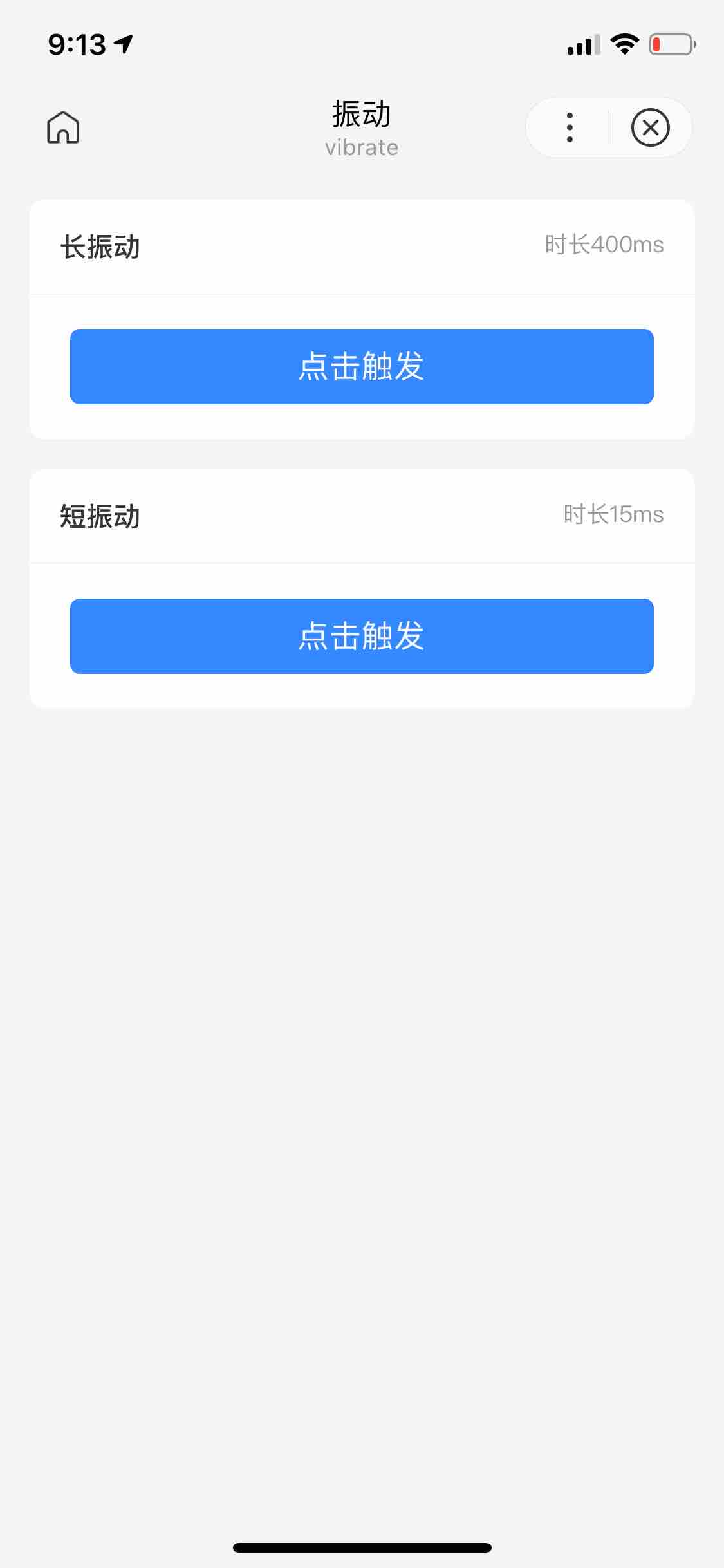 解释:使手机发生较短时间的振动(15ms),仅在 iPhone 7/7 Plus 以上及 Android 机型生效。