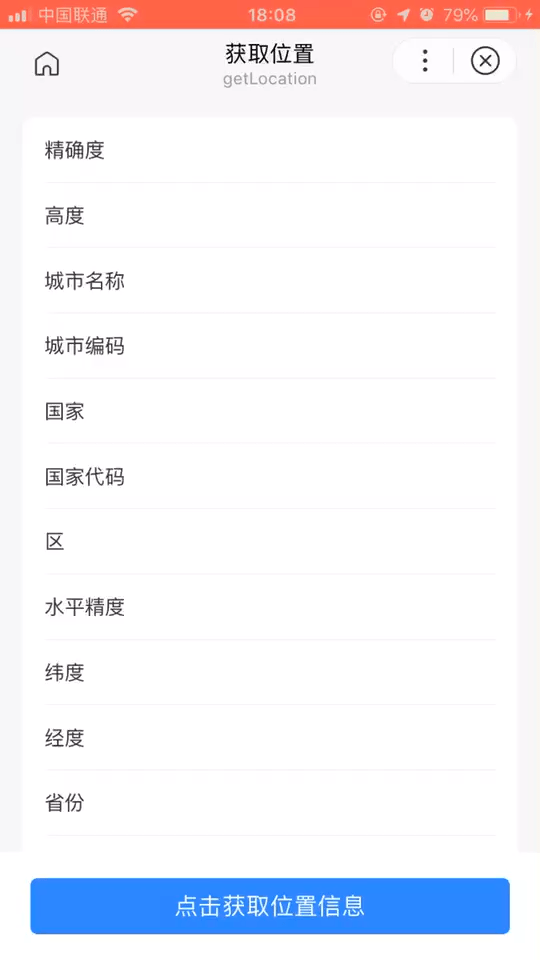 <button type="primary" bindtap="getLocation">点击获取位置信息</button>