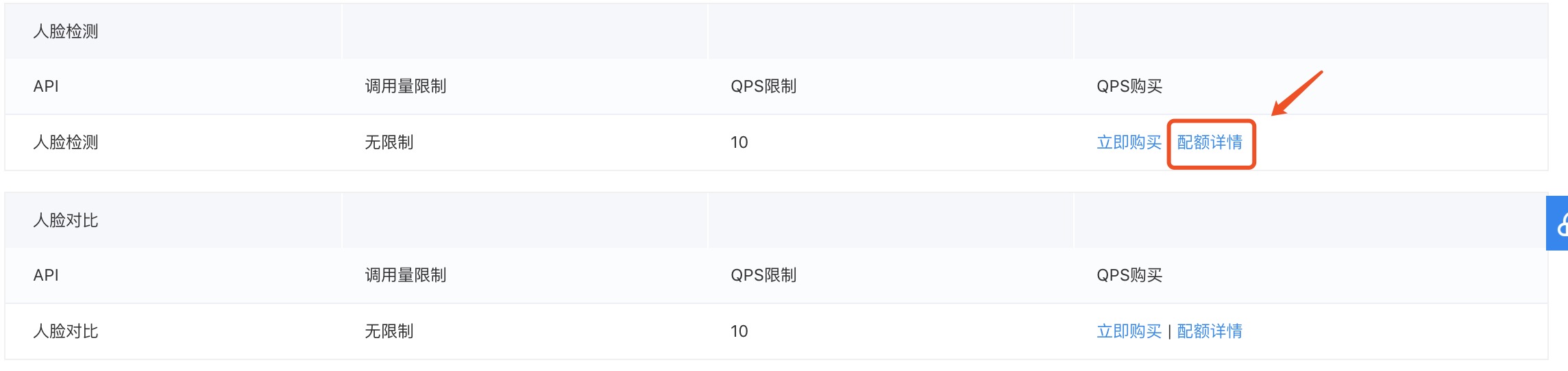- 购买 QPS 后,您可以在配额详情中查看对应服务的 QPS 配额
