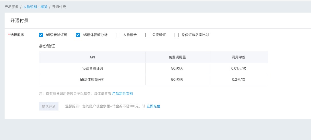 按调用量计费的服务当免费额度使用完成后,如需继续使用,需要开通付费。