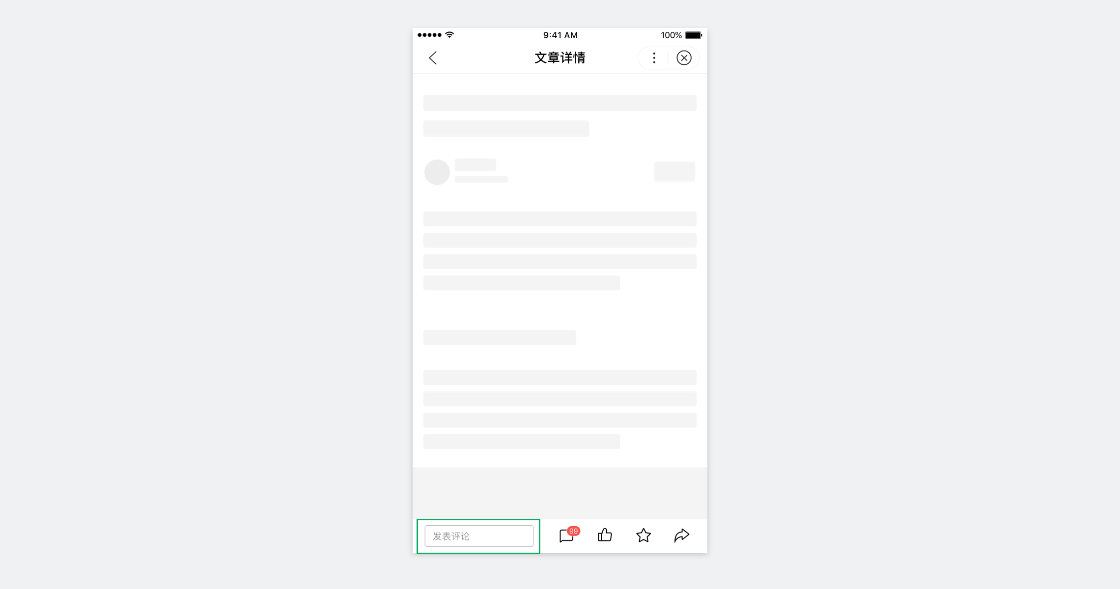 接入一站式互动组件,设置详情页内容资讯的评论入口时,位置建议选在固定置底、不随页面滚动的底bar上,方便用户随时触发评论。