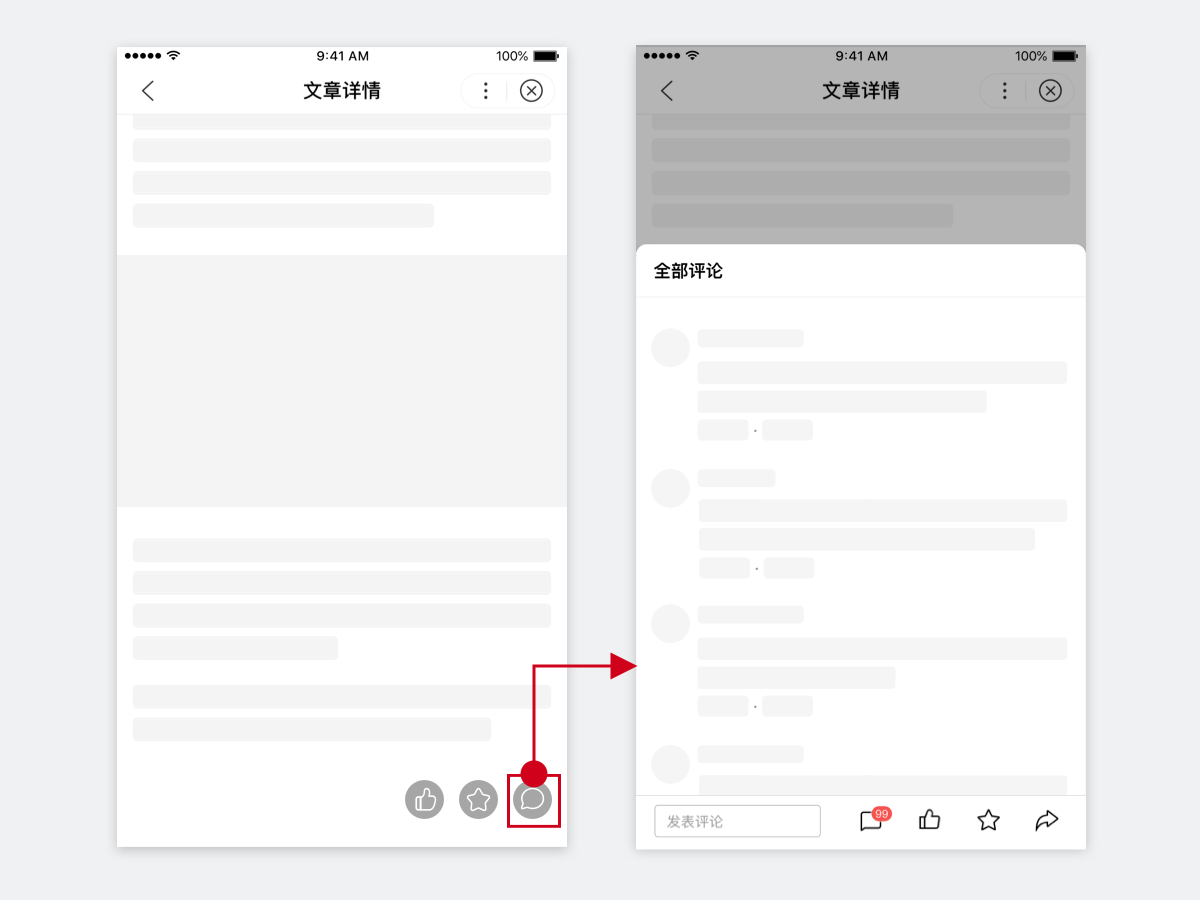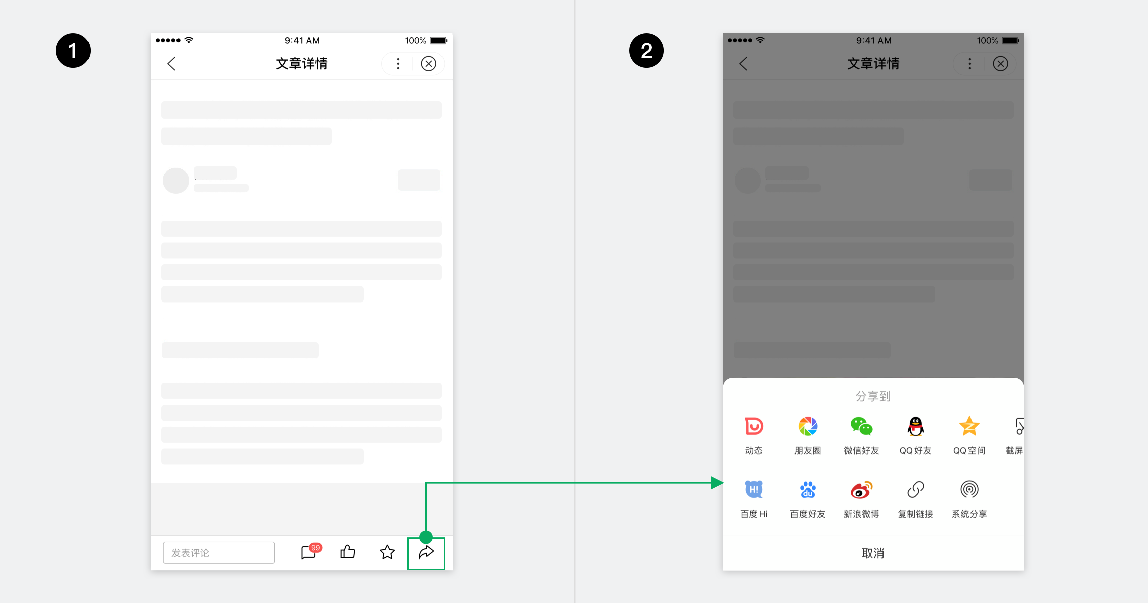 设置互动区在内容落地页中的位置时,建议使用与百度 APP 一致的形式,使互动体验更符合用户认知和操作习惯。