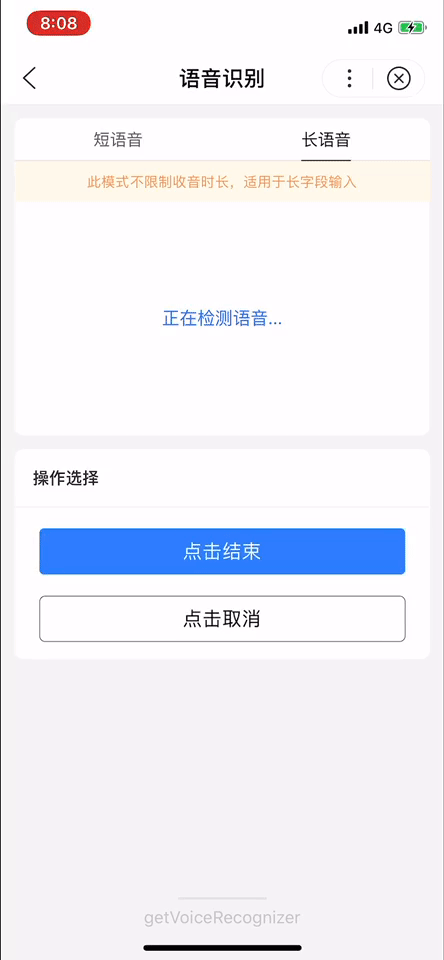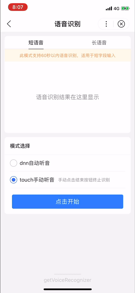 解释:获取全局唯一的语音识别器voiceRecognizer。其在工具和真机中的实现有区别,详见 API 实现差异。