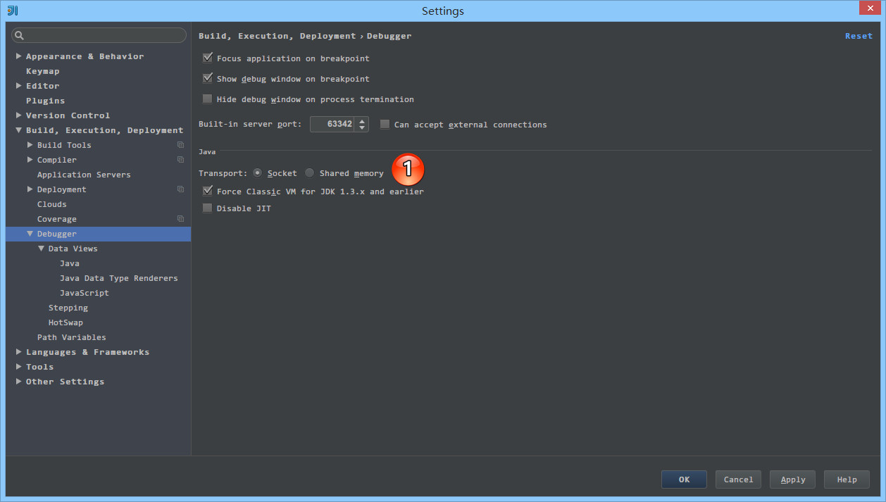 Debug连接方式,默认是 Socket。Shared memory 是 Windows 特有的一个属性,一般在 Windows 系统下建议使用此设置,相对于 Socket会快点。