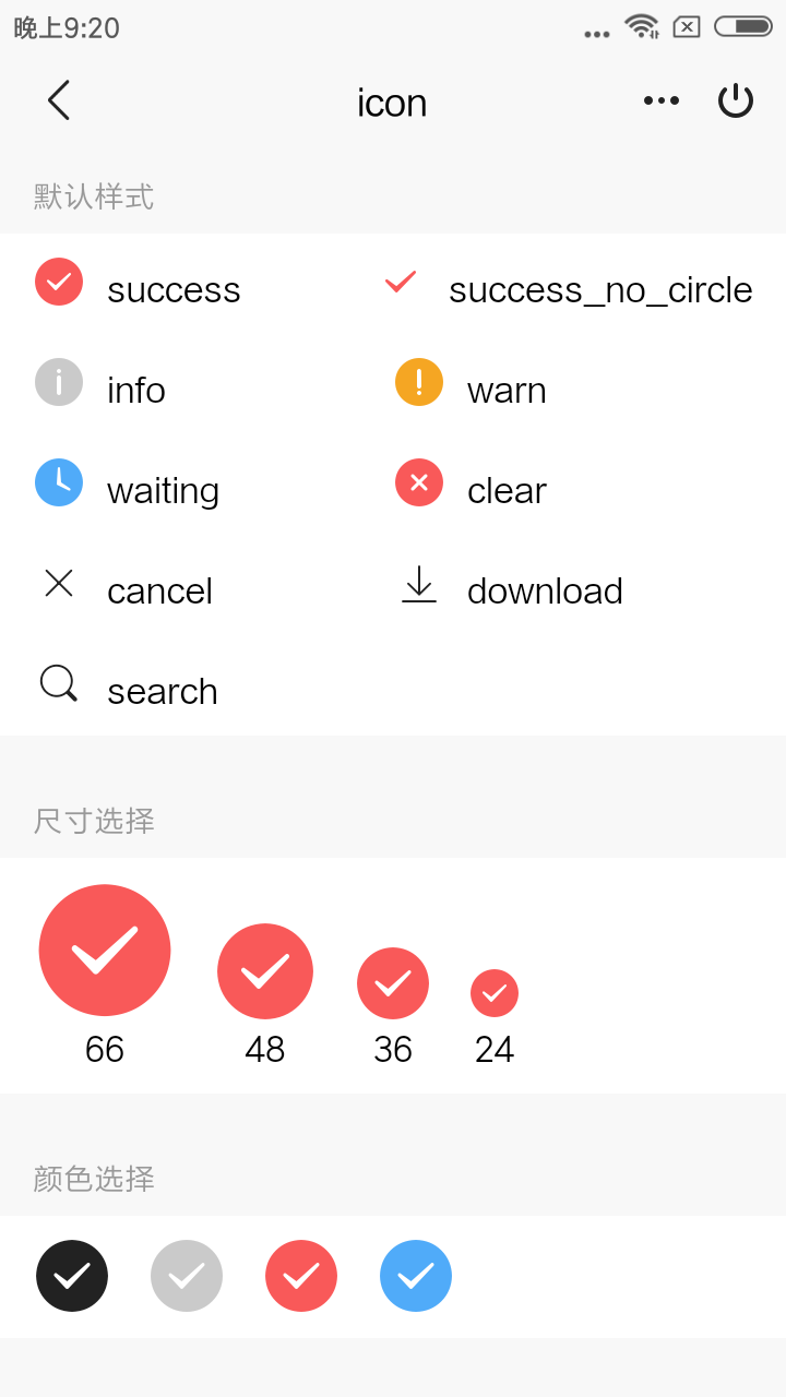 | type | String | icon 的类型,有效值:success,success_no_circle,info,warn,waiting,clear,cancel,download,search | 1.0.0 | |