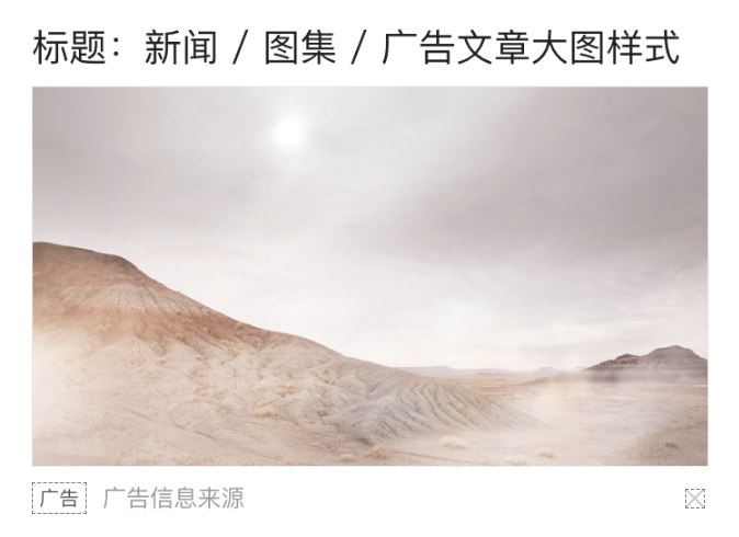 | large | 90-100 | 大图广告,该类型广告宽度是屏幕宽度的 100%,100 为标准样式,90 为最小样式 |