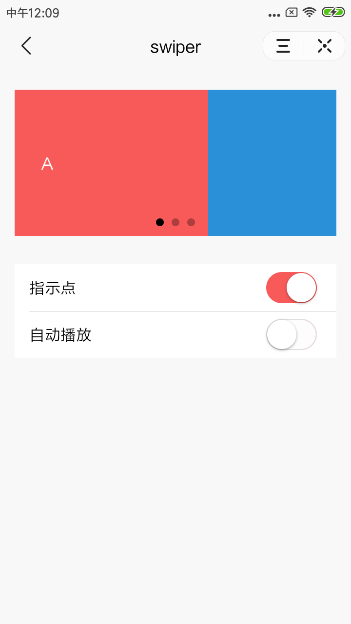 <switch checked="{{indicatorDots}}" bindchange="changeIndicatorDots" />