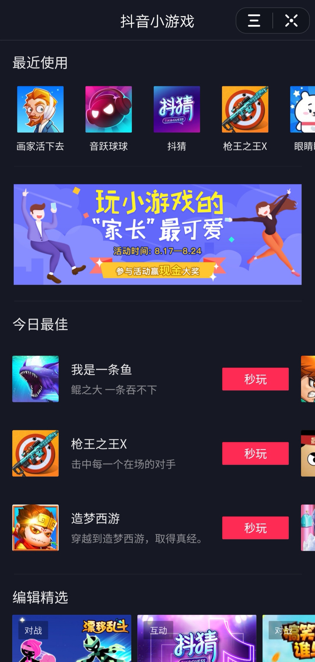 - 抖音官方小游戏商店,基于算法推荐的形式分发小游戏