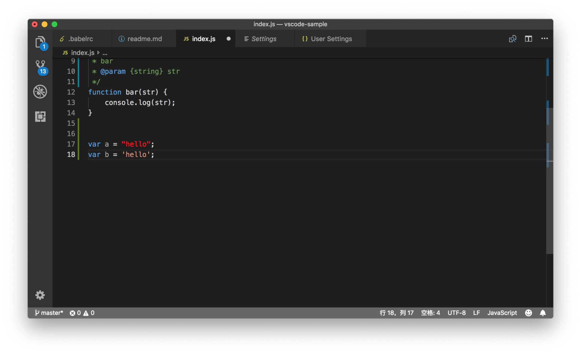 保存设置后,你再回到刚才的 JavaScript 文件时,就可以看到字符串颜色都变了。