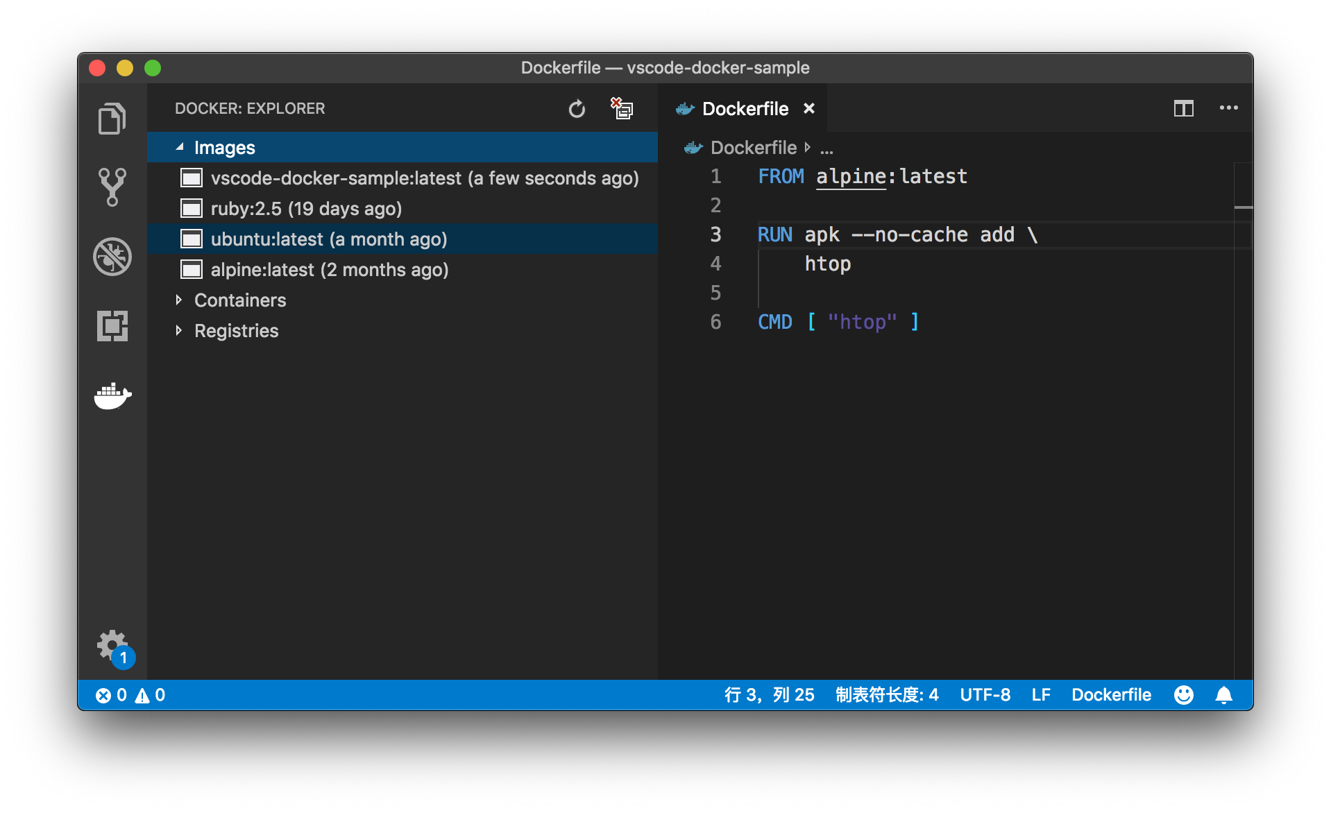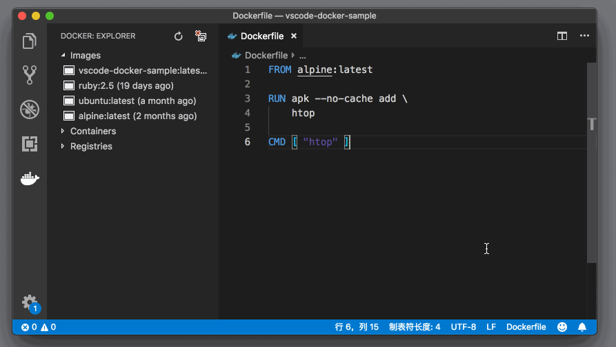 除了提供了一个视图,Docker 插件还能够对 Dockerfile 文件进行语法高亮。