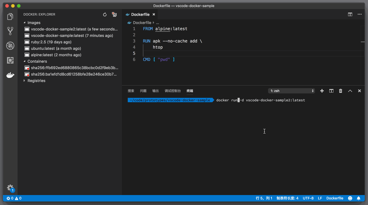 有了新的 image 后,接下来就是从 “vscode-docker-sample2:latest” 创建一个新的 container。