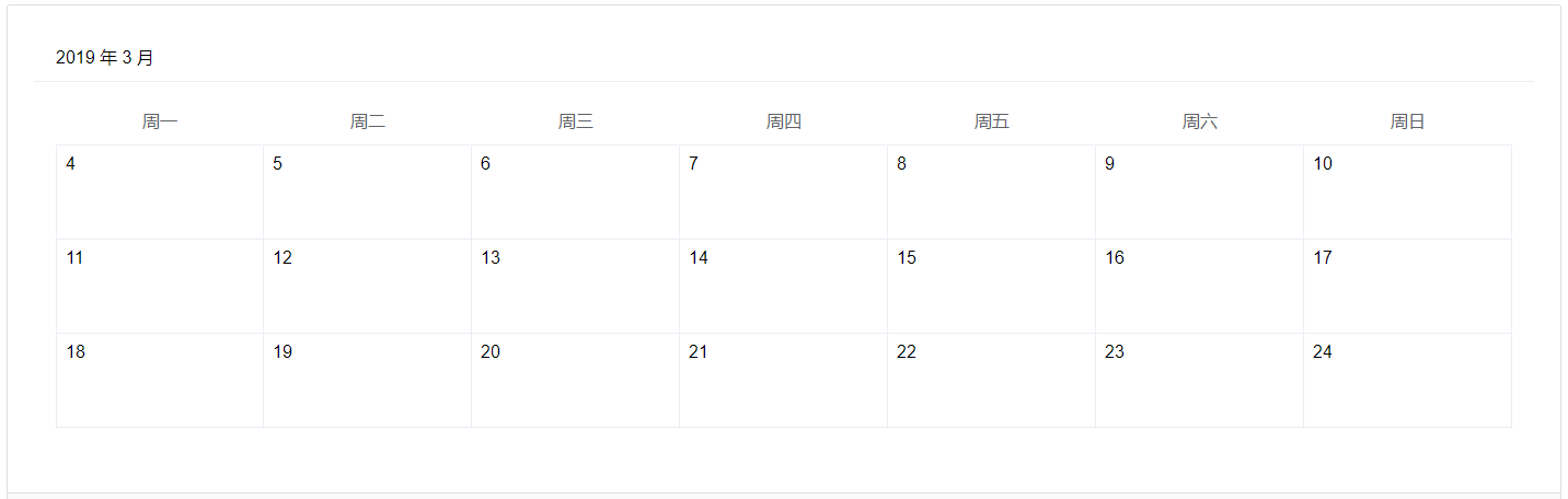 <el-calendar :range="[new Date(2019, 2, 4), new Date(2019, 2, 24)]">