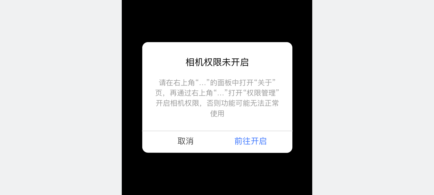 如未获取相机权限致使相机无法使用,可通过模态弹窗(showModal)进行明确的提示反馈,避免相机黑屏阻断流程,影响用户体验。