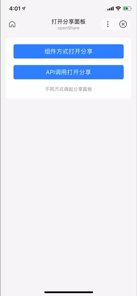 <button type="primary" bindtap="openShare">API调用打开分享</button>