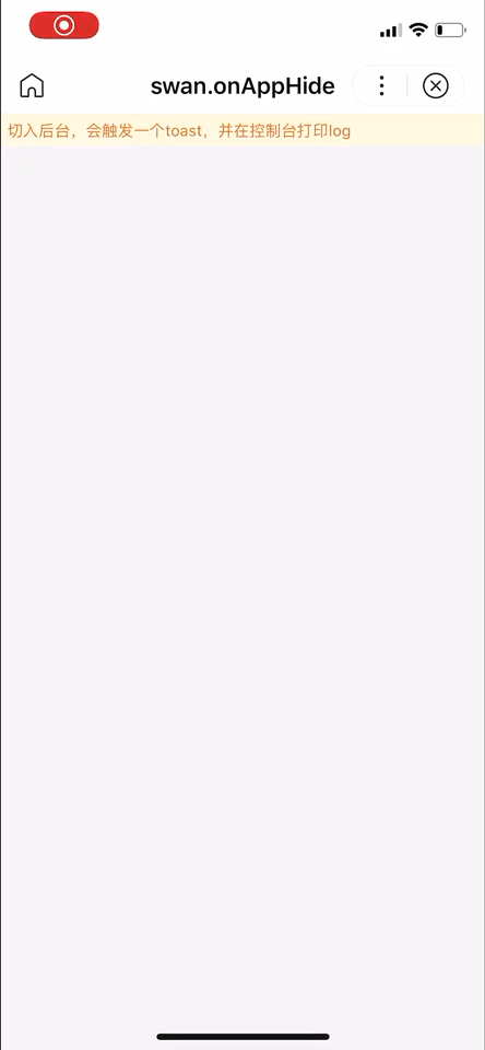 Web 态说明 :由于 Web 态框架暂不支持当前是否进入前、后台的状态检测,因此 swan.onAppHide 不会执行。